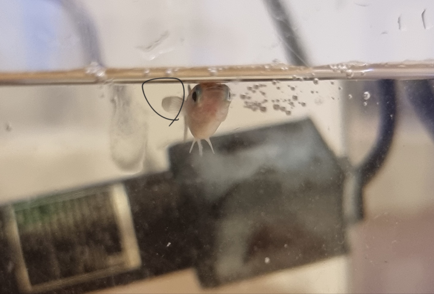 붙어있었다. 앞전에 사파이어 메다카를 세마리나 같은 증상으로 보낸적이 있어서