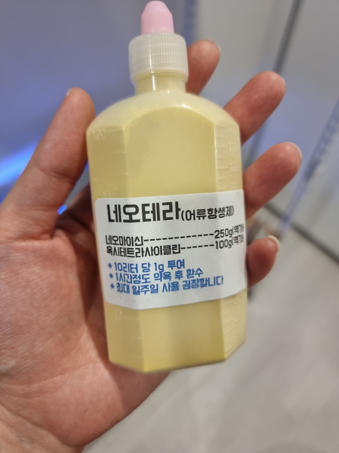 서둘러서 프레지콴텔과 네오테라 약욕을 시켜주기로 했다.